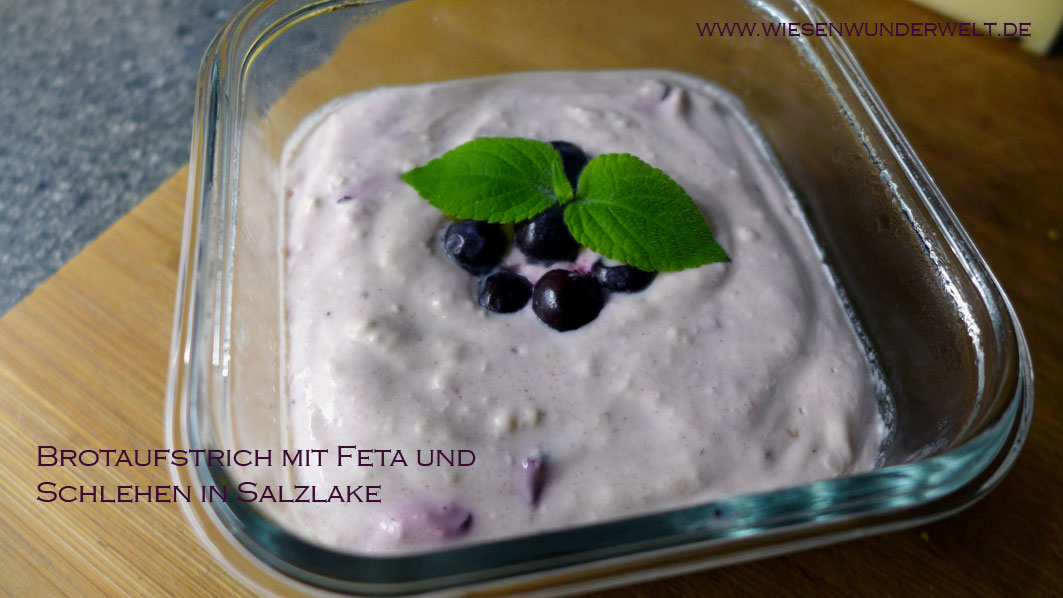 Dazu entsteint ihr ca. 20 Schlehen, die in Salzlake eingelegt waren und püriert sie mit 100 g Feta, etwas 50 Frischkäse und evtl. ein wenig Salzlake. Jetzt mit ein wenig Pfeffer abschmecken und genießen …