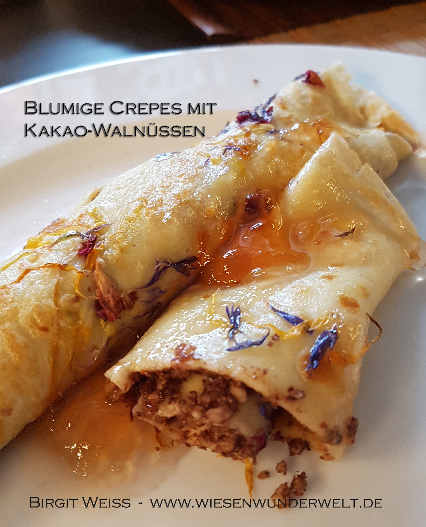 Crepes mit Blüten und Kakao-Walnüssen