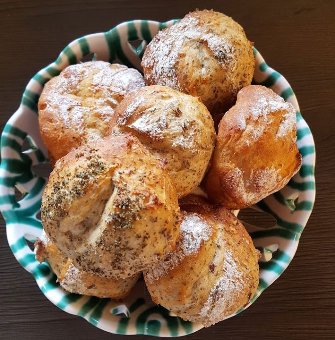 Quark-Dinkel-Brötchen mit (wilden) Samen